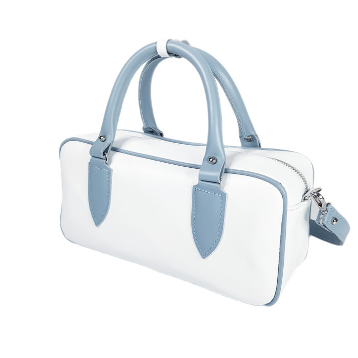 Сумка жіноча "Бріджит" натуральна шкіра, колір біла/блакитна
