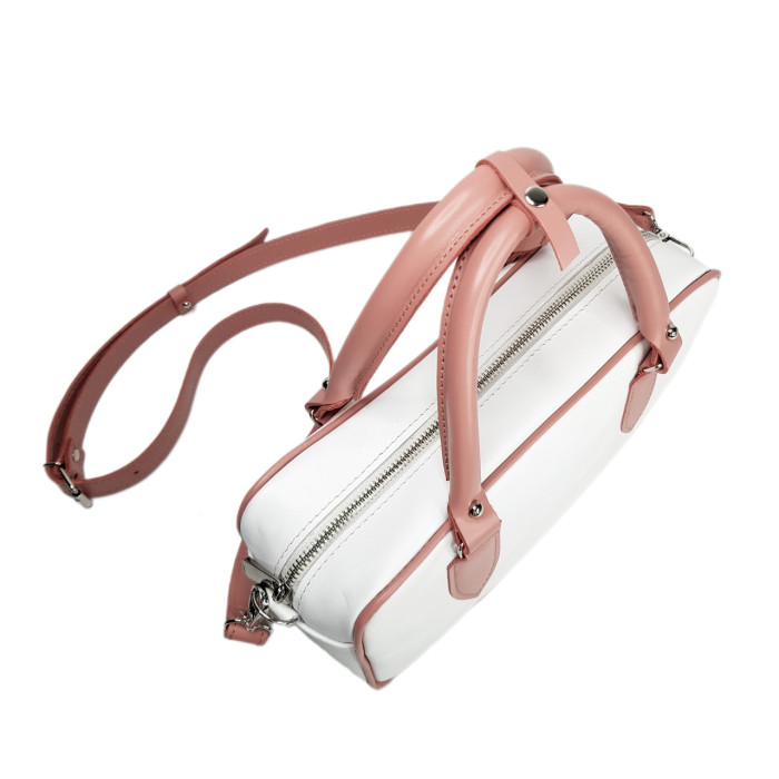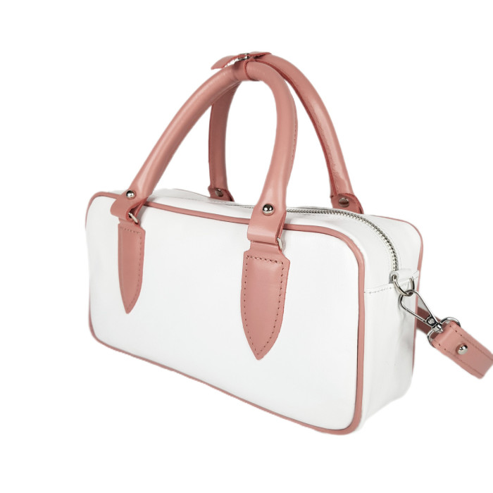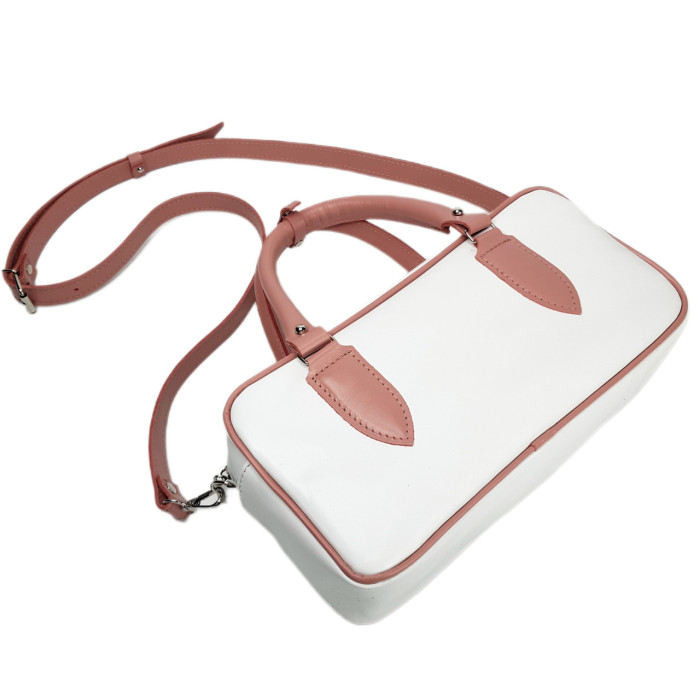 Сумка жіноча "Бріджит" натуральна шкіра, колір біла/рожевий