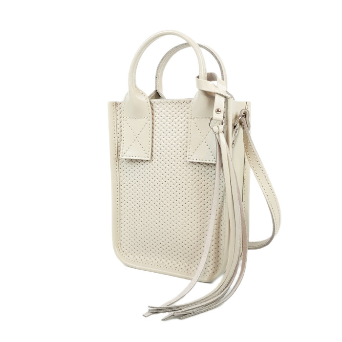 Сумка жіноча "Амелі"" натуральна шкіра, слонова кістка з тисненням венето