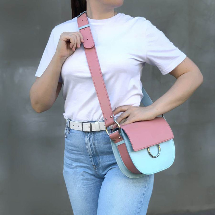 Оригінальна сумочка "Рута" не залишить байдужою її володарку! Широкий ремінь проходить через усю сумочку та надає їй особливої родзинки. Повністю виготовлена з натуральної шкіри, закривається на змійку і на два магніти. Є кишеня на блискавці на задній стінці сумки та відкрита кишеня в середині сумочки. Плечовий ремінь 130 см, можливо регулювати довжину.