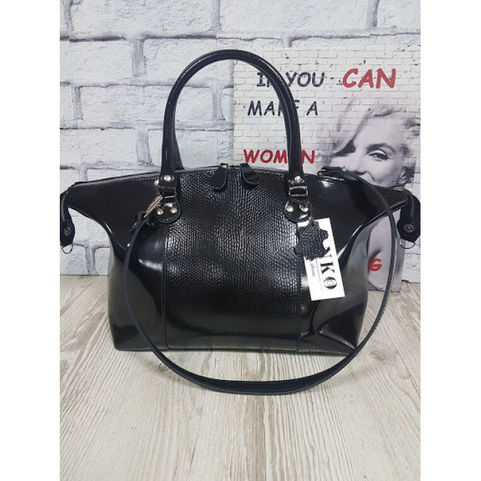 Дуже містка сумка-трансформер "ВЕРОНА". За рахунок бічних магнітів, трансформується в іншу модель сумки. (Див.фото).Сумка на підкладці, всередині є містка кишеня на блискавки. Є дві короткі ручки для носіння в руці і один плечовий ремінь, який кріпиться за допомогою карабінів. Розмір сумки (в складеному стані): 32 * 22 * 14