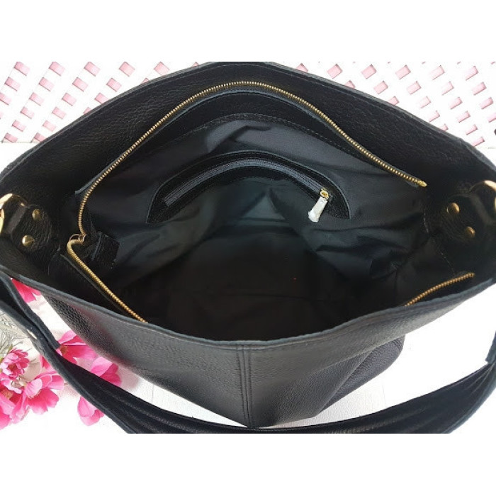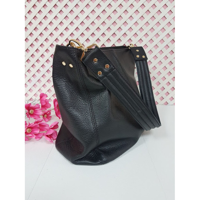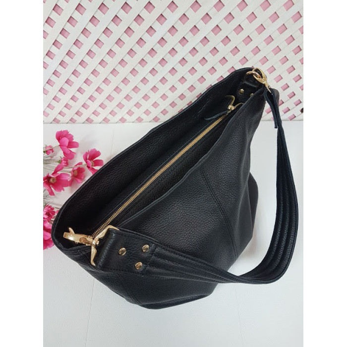 Неймовірно ефектна сумка з натуральної шкіри "ЄВА". Всередині дві відкритих кишені (по потребі є можливість додати додаткову кишеню на блискавки). Закривається сумка на блискавку і має міцний плечовий ремінь, який ми по потребі можемо зробити для Вас довше або короче.Ремень кріпиться до сумки за допомогою карабінів.