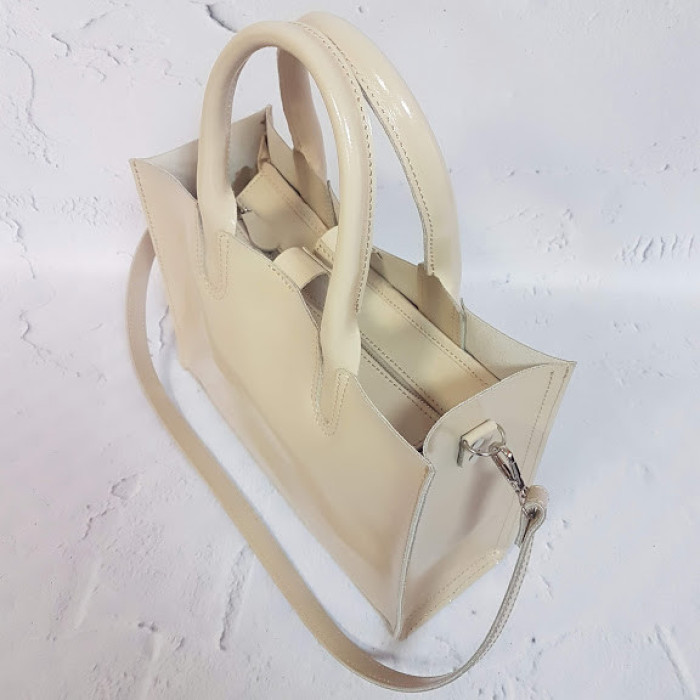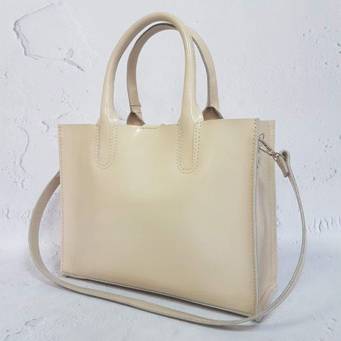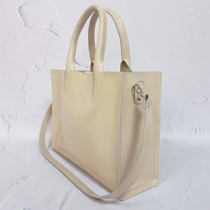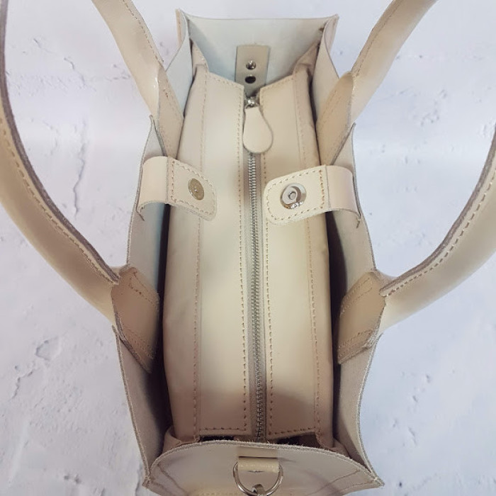 Елегантна сумка "СОЛО", виконана з натуральної шкіри найвищої якості. Сумка на підкладці. Всередині відкрита кишеня, можливо додатково зробити кишеню на блискавки. Закривається на блискавку і на магніт. Є дві короткі ручки і один довгий плечовий ремінь, який кріпиться за допомогою карабінів. Можливо вибрати фурнітуру: срібло / золото