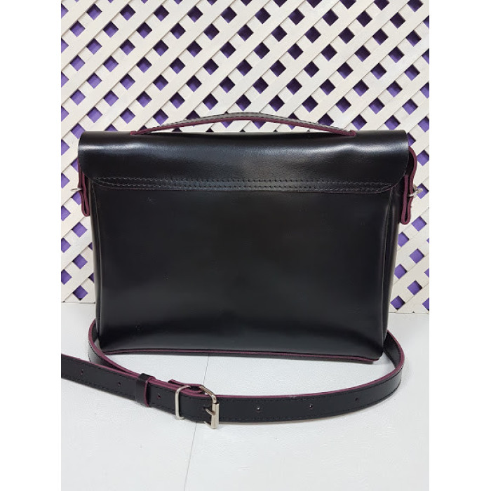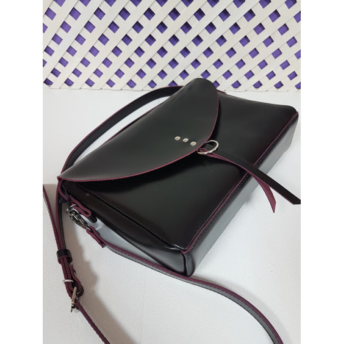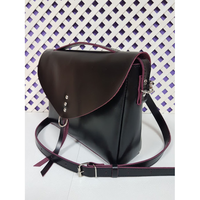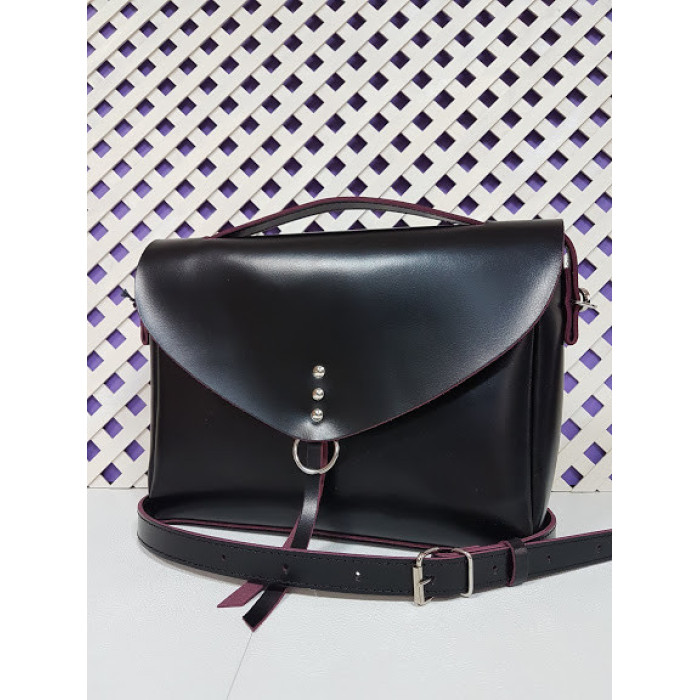 Сумка жіноча "Дороті" натуральна шкіра, чорна з бургунди виворотом