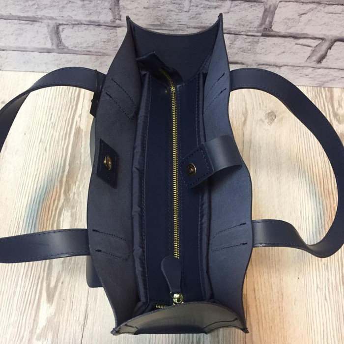 Сумка жіноча "ГАРДА" натуральна шкіра, синя матова з червоною виворотом