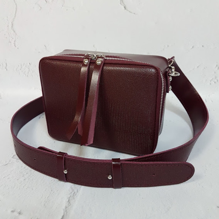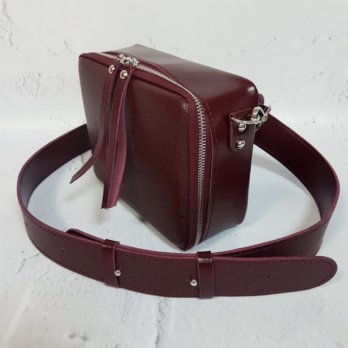 Дуже оригінальна сумочка з натуральної шкіри "КВАДРО". Вона відмінно тримає форму і помістить в себе все необхідне, що треба взяти з собою! Всередині на підкладці. Має невелику внутрішню кишеньку. Широкий плечовий ремінь 4см з регулюванням довжини.