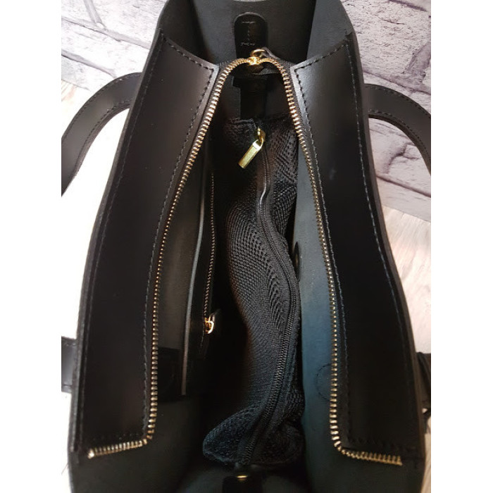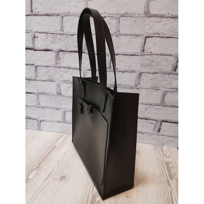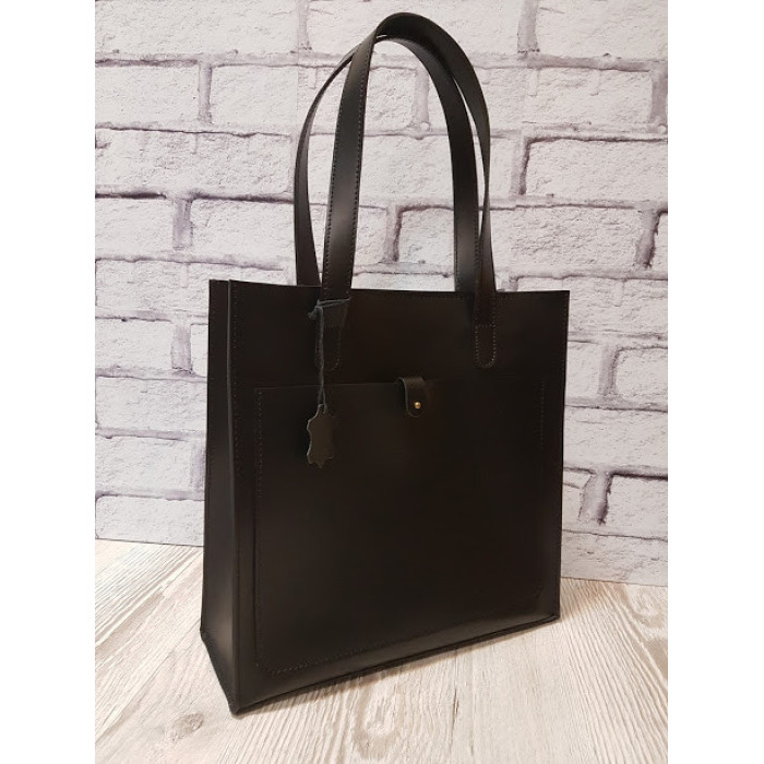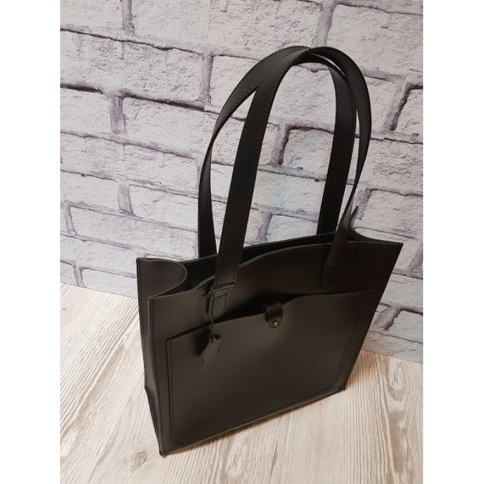 Сувора сумочка "РІЦА" з натуральної високоякісної шкіри, виглядає дуже стильно! Сумка на блискавці. Всередині знаходиться відділення-футляр, яке кріпиться до сумки. Ручки сумки можемо подовжити / вкоротити за Вашим бажанням. На зовнішній стороні сумки перебуває велика кишеня, який закривається на кнопку.