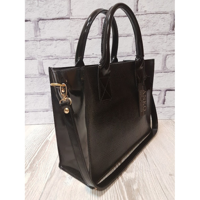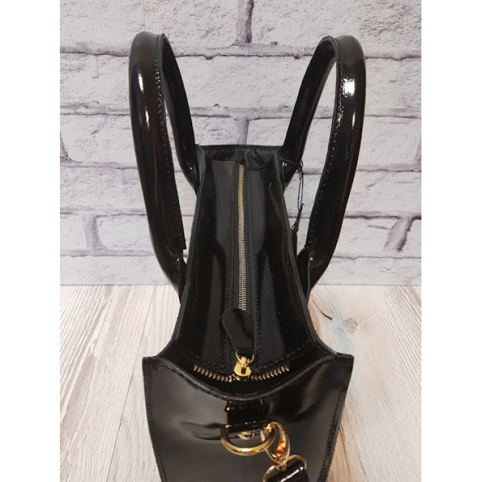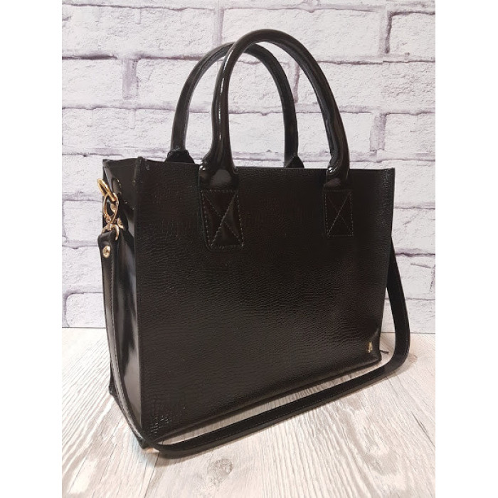 Сумка жіноча "НОВА" натуральна шкіра, чорний лак з рептилією