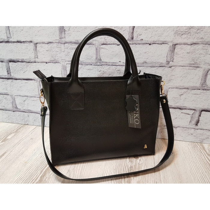 Сумка жіноча "НОВА" натуральна шкіра, чорна матова з рептилією