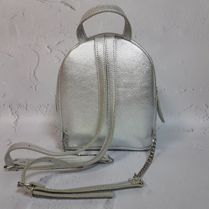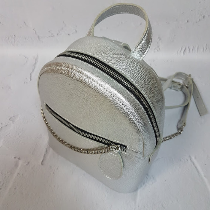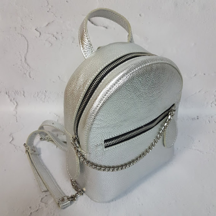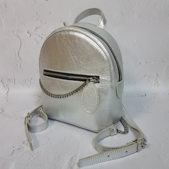 Неймовірно зручний рюкзак з якісної натуральної шкіри. Відмінно тримає форму і дуже місткий. Ланцюжок надає рюкзачку оригінальність. Має одне велике відділення і відкритий внутрішній кишеню. Із зовнішнього боку є кишеня на блискавці.