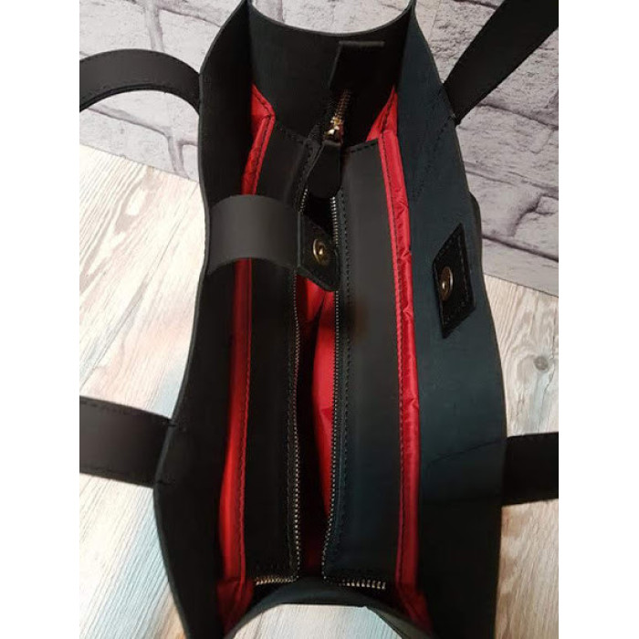 Сумка жіноча "ГАРДА" натуральна шкіра, чорна матова з червоною підкладкою