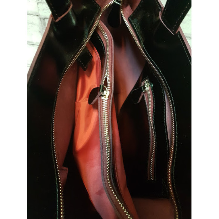 Найлегша, елегантна бесподкладочной жіноча шкіряна сумка, виконана з високоякісної натуральної шкіри. Дана модель користується популярністю, так як завдяки тому, що вона не має підкладку, сумка має дуже легку вагу. При цьому сумка досить містка, має внутрішній тканинний кишеню на блискавки і маленький бічний, за допомогою яких можна структурувати вміст. Сумка відмінно виглядає і зручно носиться! Її можна вільно носити на плечі (довгі ручки це дозволяють), а також в руці і на лікті. У сумки однакові передня сторона і задня, тому абсолютно не важливо, яким боком Ви її візьмете - вона буде відмінно виглядати як спереду, так і ззаду!
