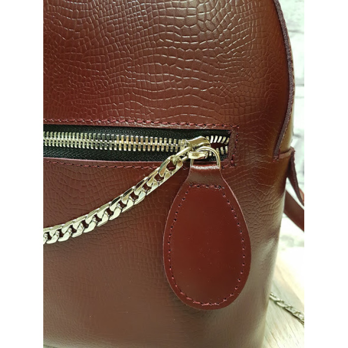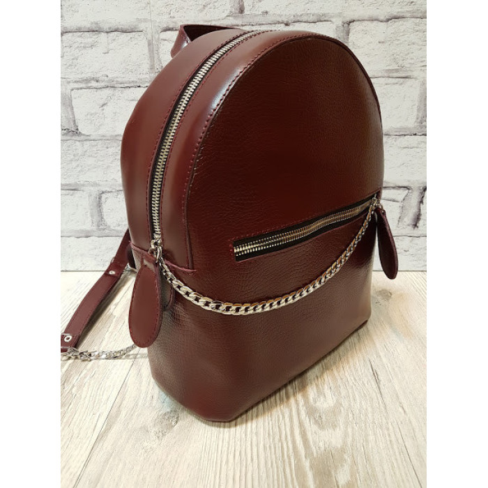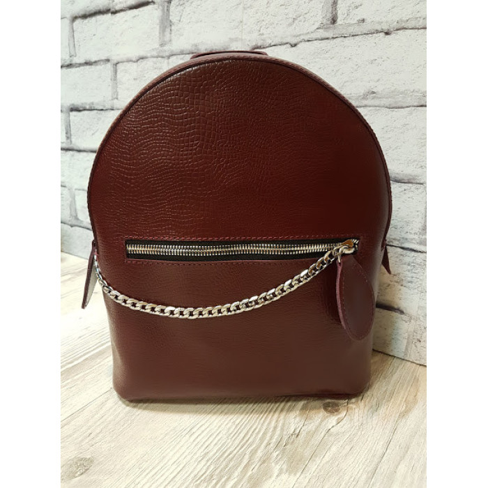 Неймовірно зручний рюкзак з якісної натуральної шкіри. Відмінно тримає форму і дуже місткий.Ланцюжок надає рюкзачки орігінальності.Має одне велике відділення, всередині на підкладці.