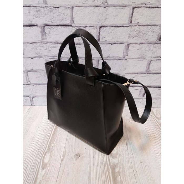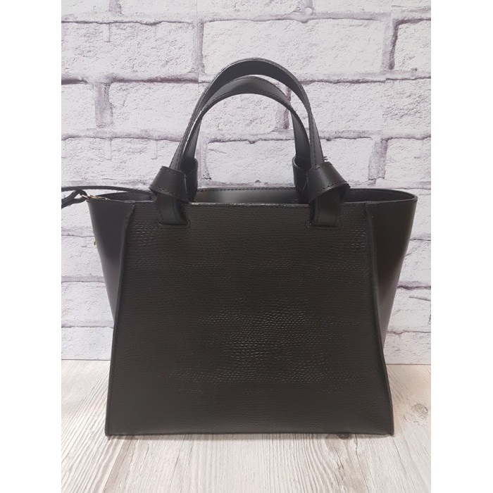 Сумка жіноча "ПРАГМА" з натуральної шкіри, чорна матова з рептилією