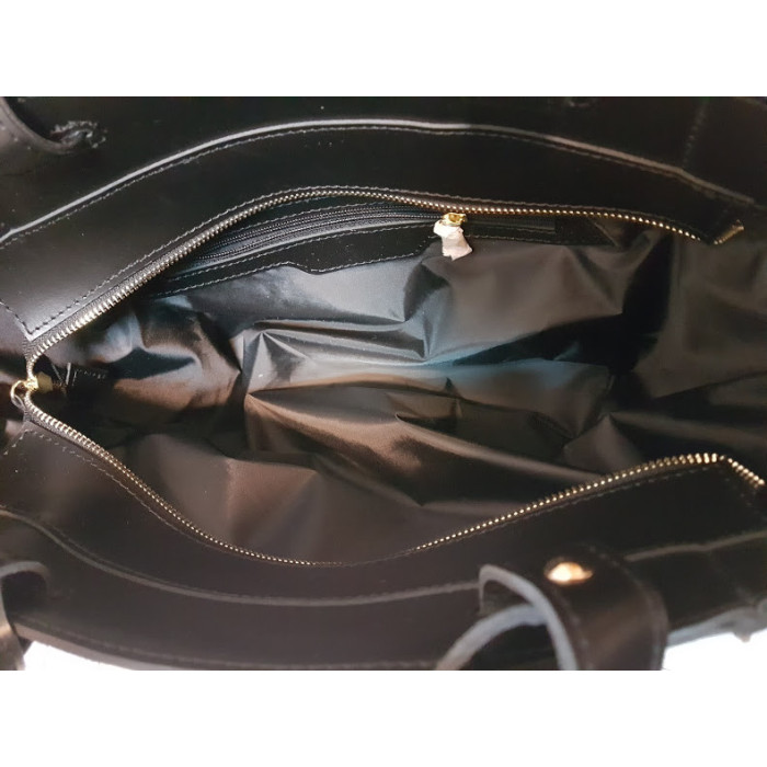 Сумка жіноча "ПРАГМА" виготовлена з якісної натуральної шкіри. Сумочка з оригінальними ручками, які ми можемо по потребі подовжити. Всередині є дві відкритих кишені (додатково можемо зробити кишеню на блискавки). Закривається на блискавку, має довгий плечовий ремінь, який кріпиться на карабіни.