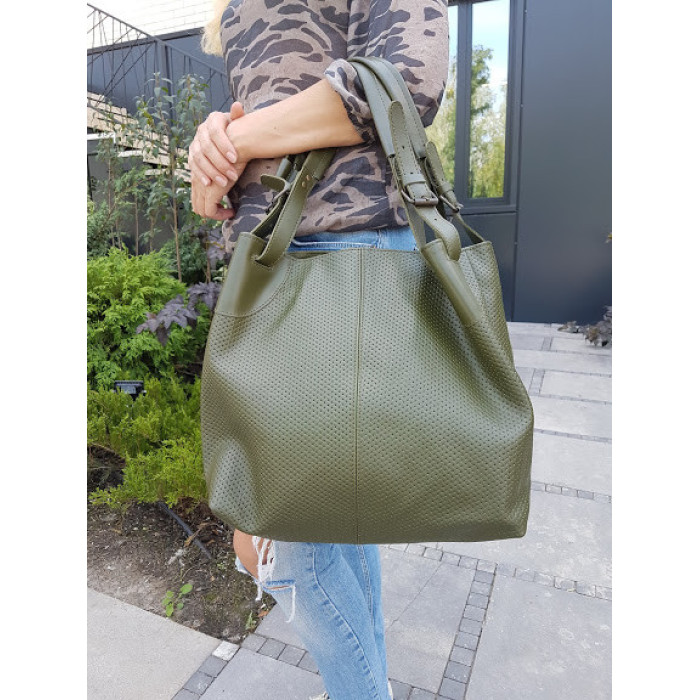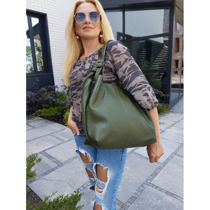 Містка і практична сумка, стане невід'ємною частиною гардеробу будь-якої модніци.Ету сумку можна носити як на плечі, так і в руці. Сумка на підкладці. Всередині є два відритих кишеньки і кишеню на блискавки.