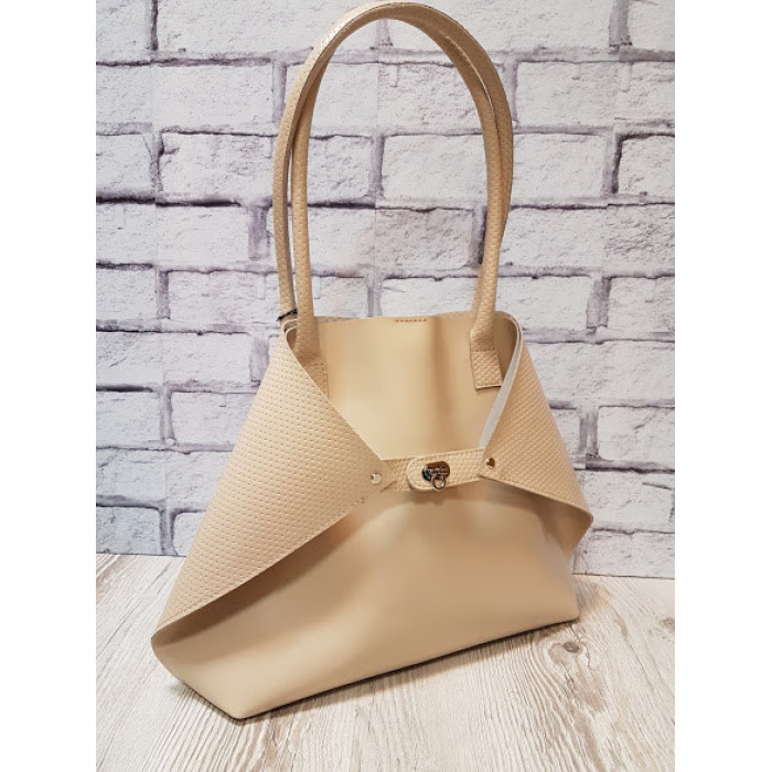 Жіноча сумка "Флай" натуральна шкіра, латте з кошиком