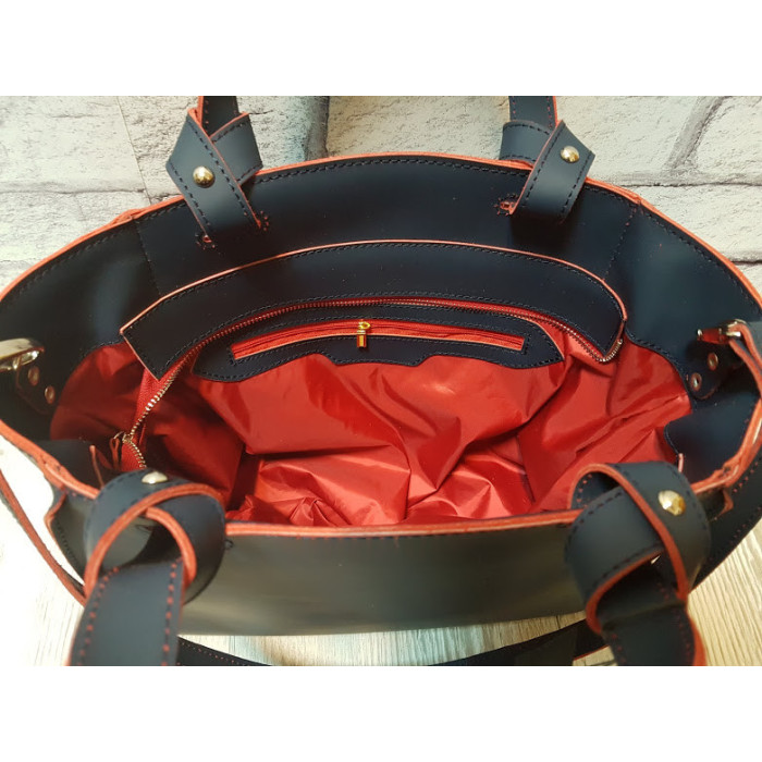 Сумка жіноча "ПРАГМА" виготовлена з якісної натуральної шкіри. Сумочка з оригінальними ручками, які ми можемо по потребі подовжити. Всередині є дві відкритих кишені (додатково можемо зробити кишеню на блискавки). Закривається на блискавку, має довгий плечовий ремінь, який кріпиться на карабіни.