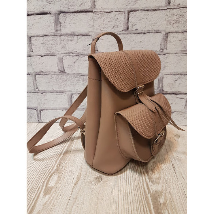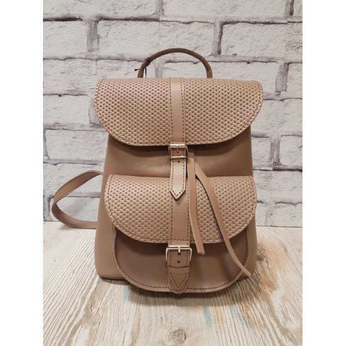 Рюкзак жіночий "ВОЯЖ" натуральна шкіра, латте матова з кошиком