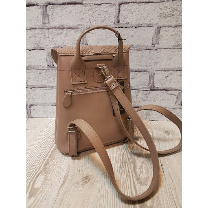 Рюкзак жіночий "ВОЯЖ" натуральна шкіра, слонова кістка з рептилією