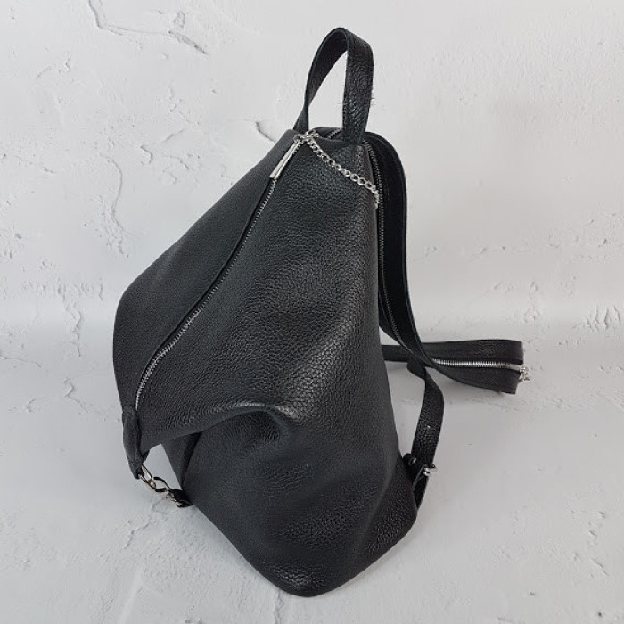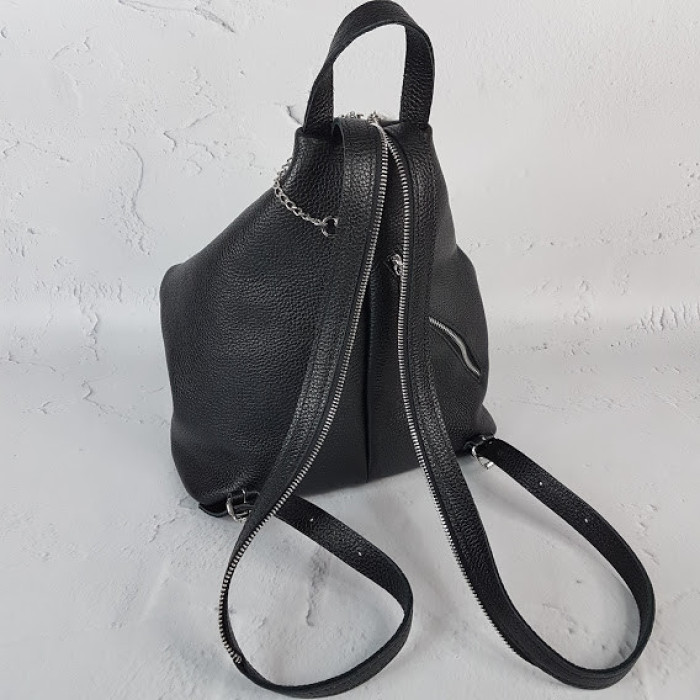 Місткий, модний і неймовірно зручний рюкзак! Має одне велике відділення і дві внутрішні кишені, одна з них на блискавці. Плечові ремені з можливістю регулювання довжини, з двох ременів за допомогою блискавки, можна зробити один. При закритій блискавки, собачку можна прикріпити до прихованого кільцю ланцюжком, що забезпечує "підвищену безпеку" Ваших речей. Рюкзак всередині на підкладці.