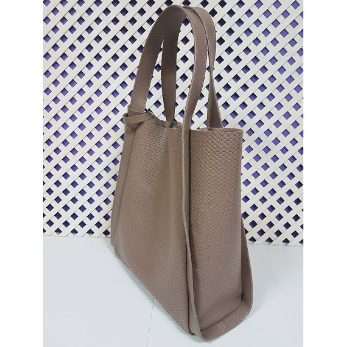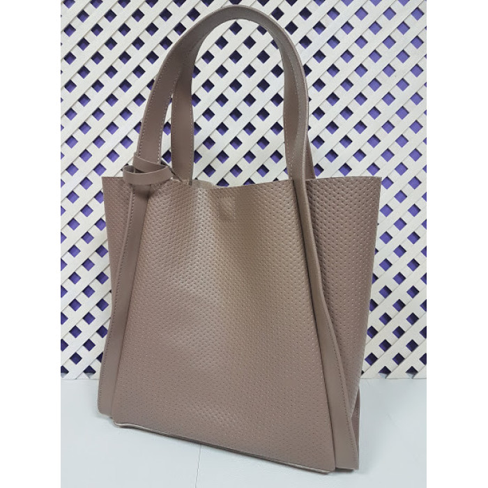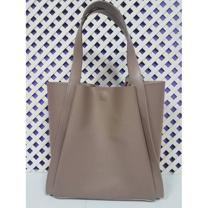 Містка сумка з натуральної шкіри, всередині спеціальне відділення - футляр, яке кріпиться до ручки сумки за допомогою шкіряного ремінця. Можливо виготовити сумку на блискавки і на підкладці. Ручки сумки можемо подовжити за Вашим бажанням. Застібається на прихований магніт. Розмір сумки: 27 * 32 * 11