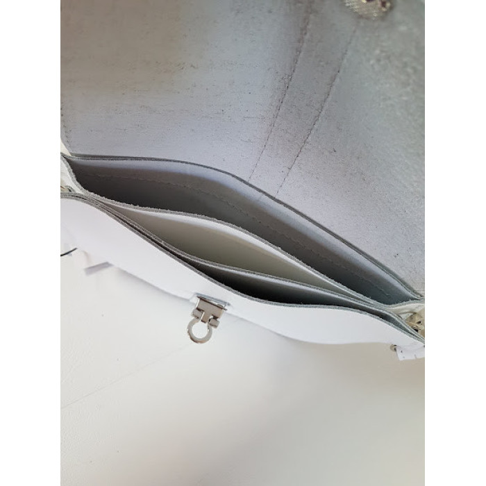 Ця маленька сумочка стане незамінним аксесуаром на всі випадки життя! Виконана з натуральної якісної шкіри, добре тримає форму. Закривається на металевий портфельний замочок. Усередині три відділення, без підкладки, має багато варіантів для носіння і можливо її придбати з шкіряний ременем або ланцюжком. З шкіряним ременем можна носити в форматі поясної сумки, а також на плече.З ланцюжком можливо носити на плечі і на поясі. Можливо придбати і ремінь, і ланцюжок, щоб міняти їх місцями. Вибір за вами!