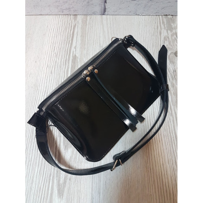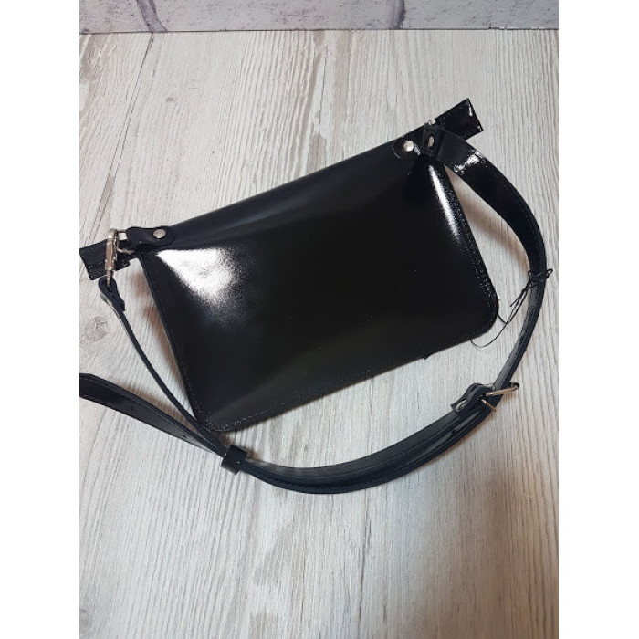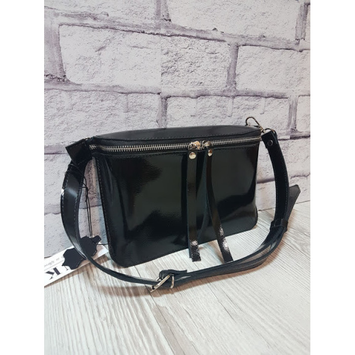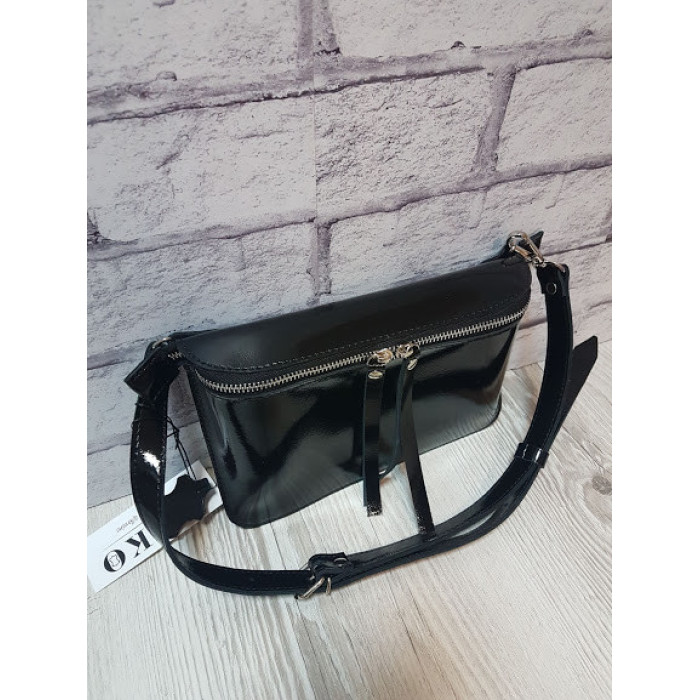 Сумка жіноча поясна "НЕКСТ" натуральна шкіра, чорний глянець
