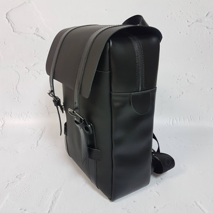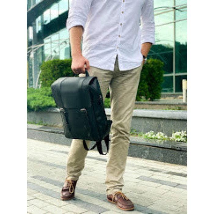 Неймовірно зручний рюкзак з якісної натуральної шкіри. Він дуже місткий і з великою кількістю відділень. Спинка і дно рюкзака ущільнені спеціальним ортопедичним матеріалом. Усередині рюкзака спеціальне відділення для ноутбука. Рюкзак закривається на магніти або на пряжки за побажанням. Спереду кишеня на магніті, а зі зворотного боку кишеня на блискавки. Має два плечових тканинних ременя, які регулюються. Також є коротка ручка.
