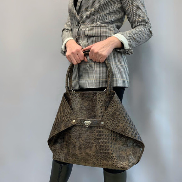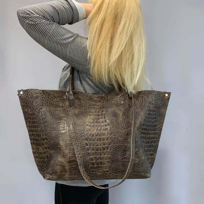 Жіноча сумка "Флай" натуральна шкіра, коричнева під крокодила