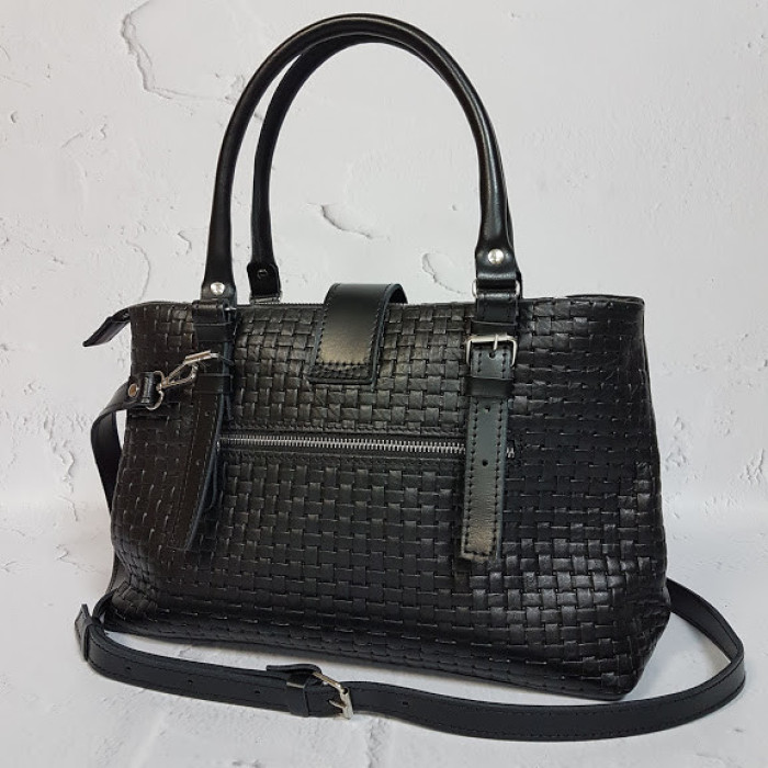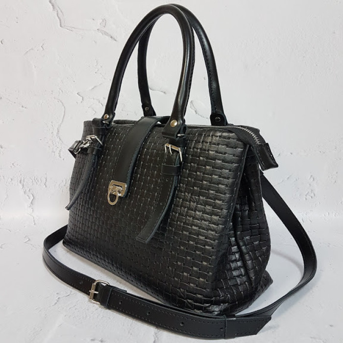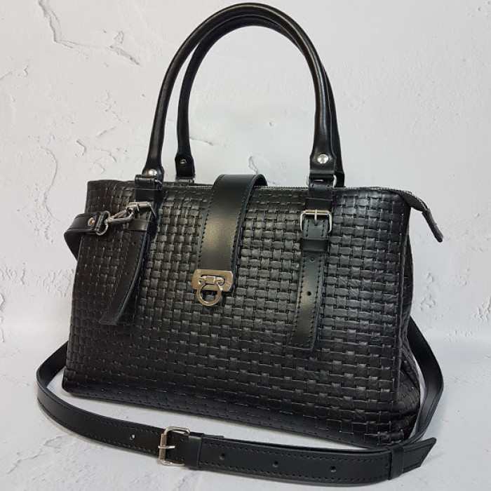 Елегантна і витончена класична сумка "Хлоя", виконана з натуральної шкіри. Сумочка на підкладці, всередині є кишеня на блискавці і один відкрита кишеня. Сумка повністю закривається на блискавку і на ремінець з поворотним замочком. Є дві регульовані короткі ручки і довгий плечовий ремінь. На зовнішній стороні сумки є містка кишеня на блискавки.