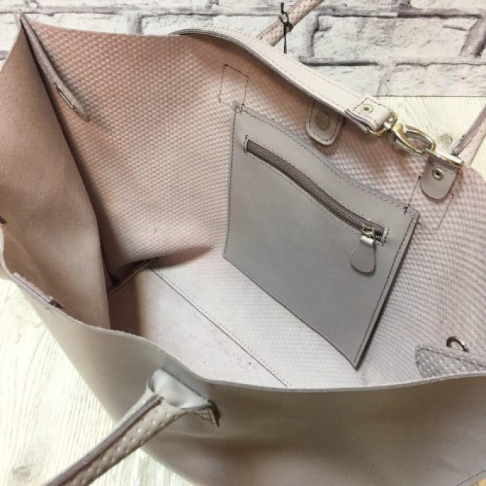Жіноча сумка "Флай" натуральна шкіра, світло-бузкова з кошиком