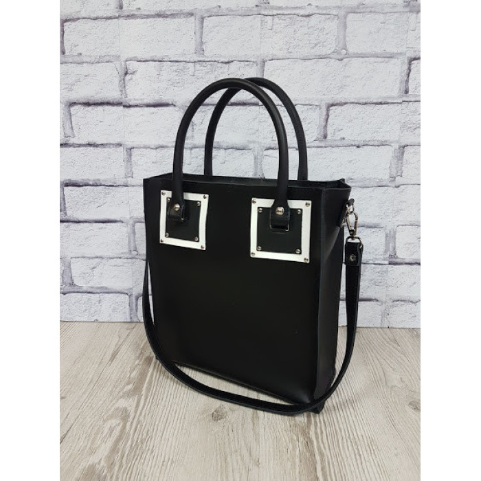 Сумка жіноча "Трініті" натуральна шкіра, чорна з тисненням "Портофіно"