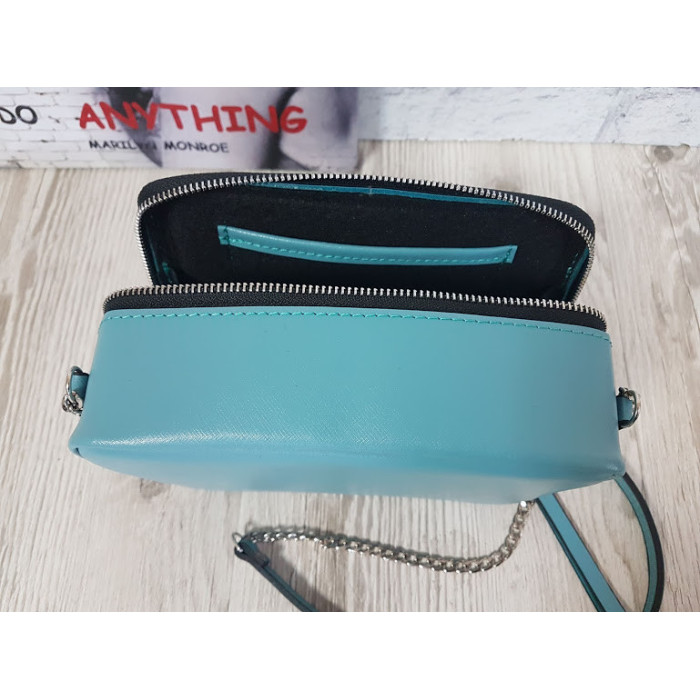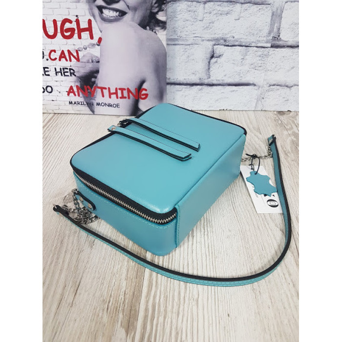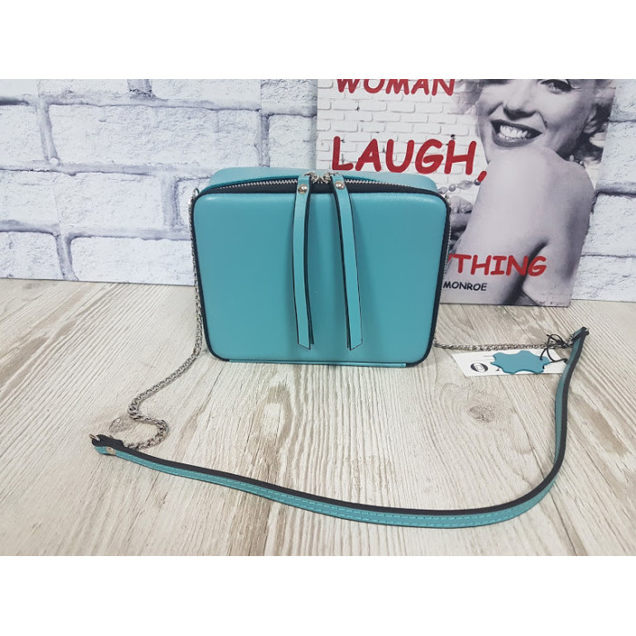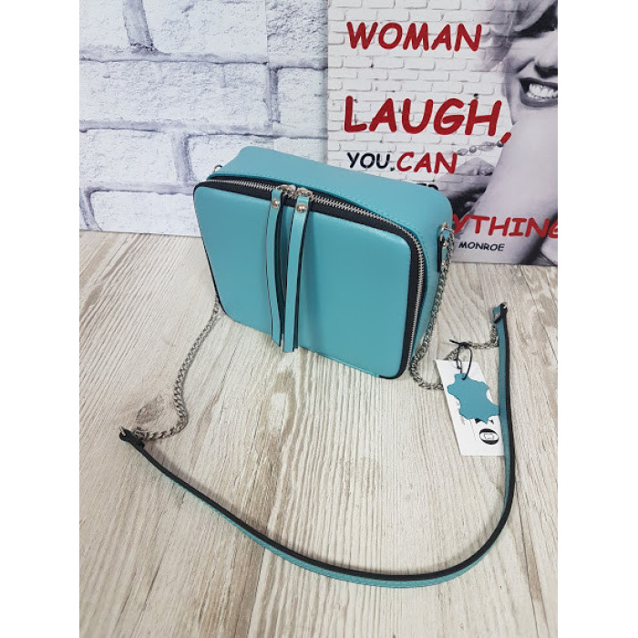 Дуже оригінальна сумочка з натуральної шкіри "КВАДРО".Вона відмінно тримає форму і помістить в себе все необхідне, що треба взяти з собою! Особливість цієї моделі в контрастно чорній блискавці, але, якщо Ви хочете, ми можемо зробити її під колір сумки. Всередині на підкладці. Має невелику внутрішню кишеньку. Ремінець це щільний срібний ланцюг з плечовою вставкою зі шкіри.