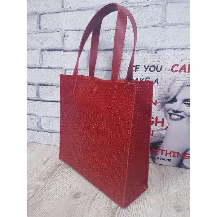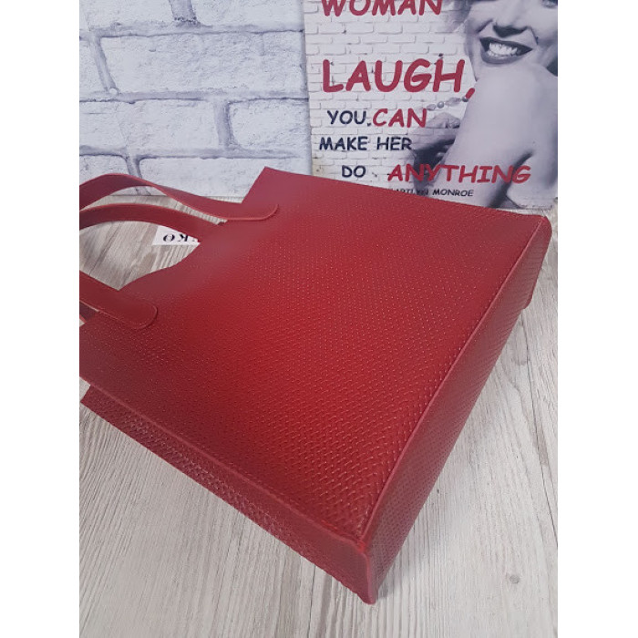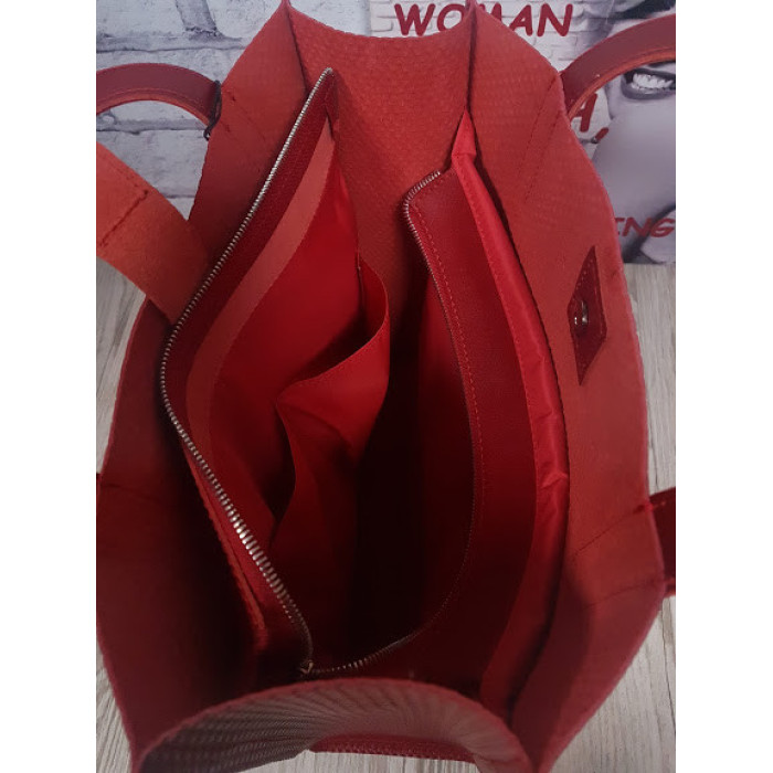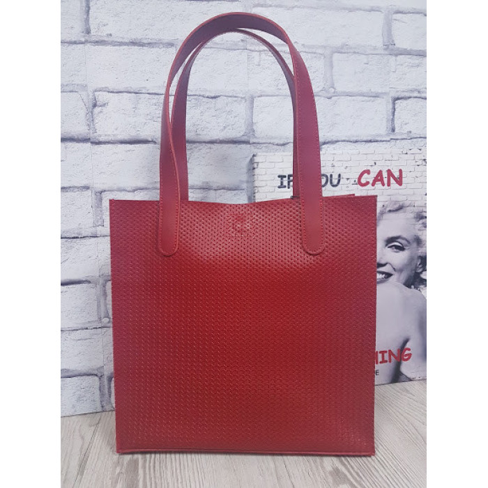 Сумка-пакет жіноча "Анет" натуральна шкіра, червона матова плетінка