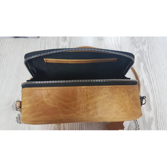 Дуже оригінальна сумочка з натуральної шкіри "КВАДРО".Вона відмінно тримає форму і помістить в себе все необхідне, що треба взяти з собою! Особливість цієї моделі в контрастно чорній блискавці, але, якщо Ви хочете, ми можемо зробити її під колір сумки. Всередині на підкладці. Має невелику внутрішню кишеньку. Ремінець це щільний срібний ланцюг з плечовою вставкою зі шкіри.