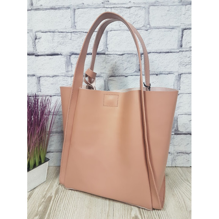 Містка сумка з натуральної шкіри, всередині спеціальне відділення - футляр, яке кріпиться до ручки сумки за допомогою шкіряного ремінця. Можливо виготовити сумку на блискавки і на підкладці. Ручки сумки можемо подовжити за Вашим бажанням. Застібається на прихований магніт. Розмір сумки: 27 * 32 * 11