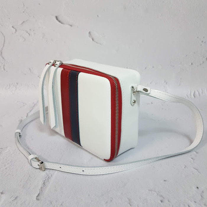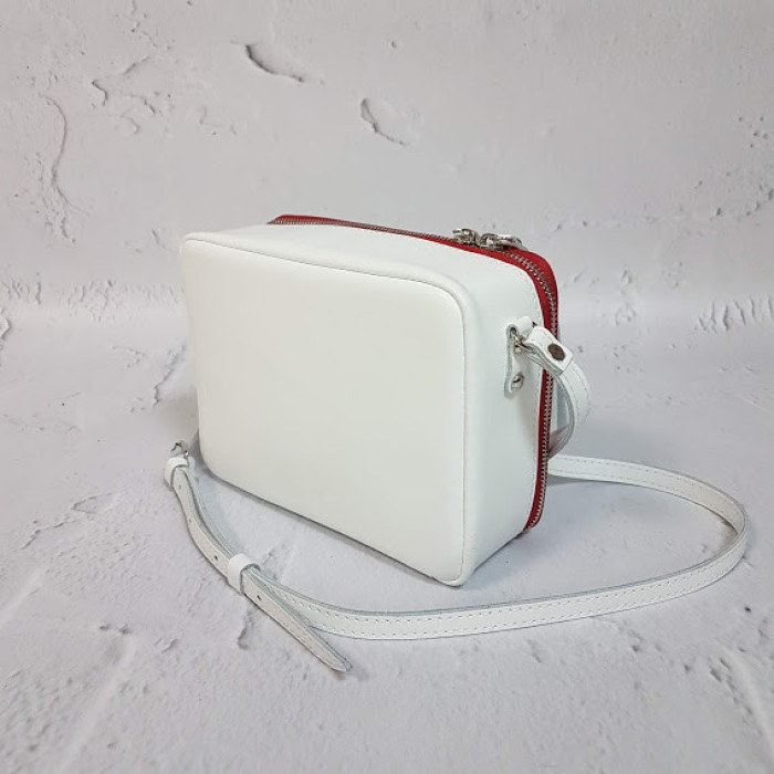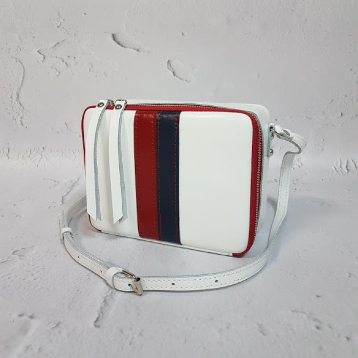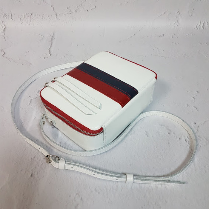 Модель сумочки з натуральної шкіри "КВАДРО" відмінно тримає форму і помістить в себе все необхідне, що треба взяти з собою! Особливість її в контрастною блискавки, але якщо Ви хочете, ми можемо зробити її під колір сумки. Всередині на підкладці. Має невелику внутрішню кишеньку 14 * 10. Ремінь шкіряний з можливістю регулювання довжини.