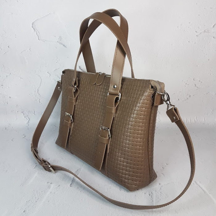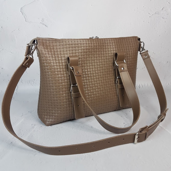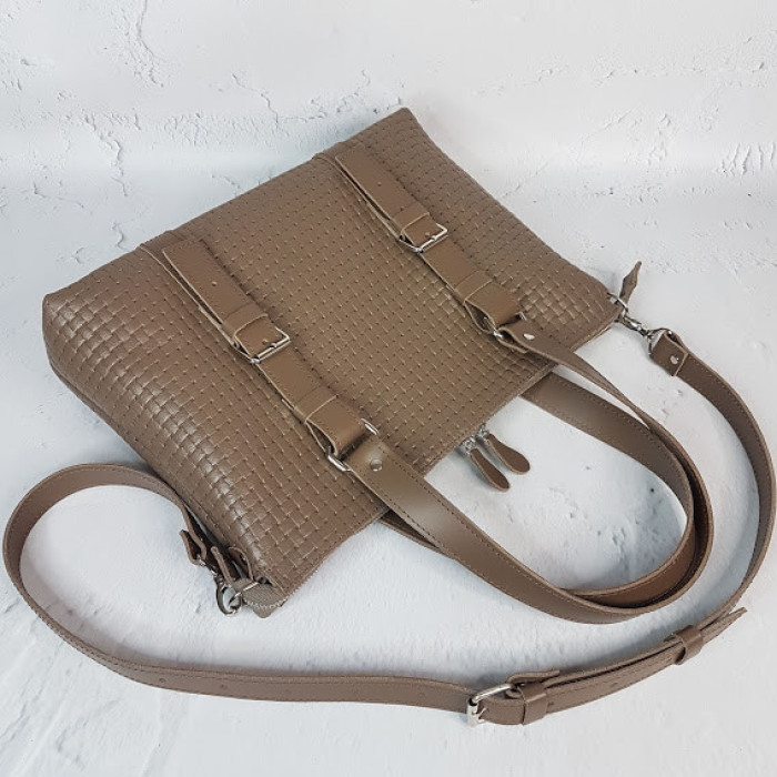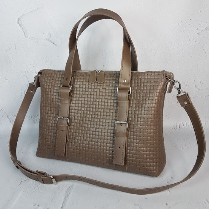 Сумка "Монако" виконана з якісної натуральної шкіри, дуже містка і зручна. Всередині є два великих відділення і кишеня на блискавки. Сумка закривається на блискавку, має довгий ремінь на карабіни і дві ручки, які регулюються.