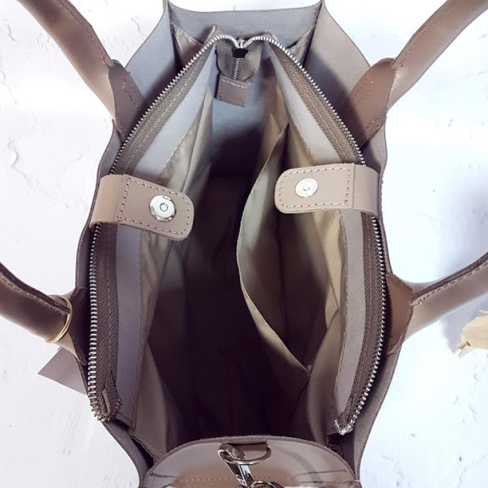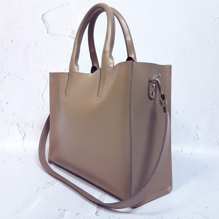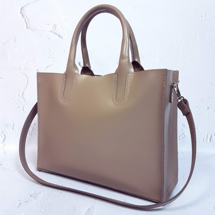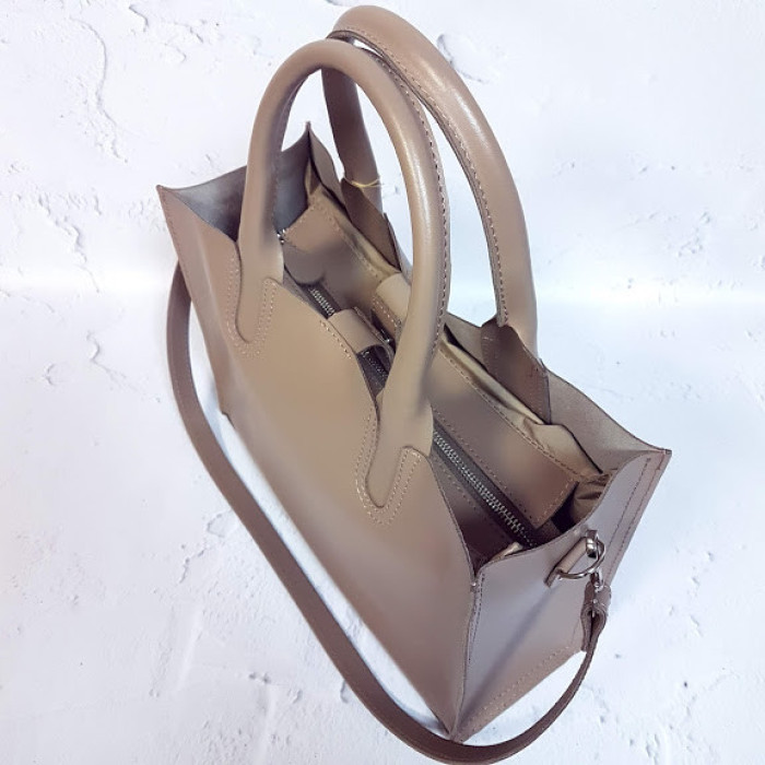 Елегантна сумка "СОЛО", виконана з натуральної шкіри найвищої якості. Сумка на підкладці. Всередині відкрита кишеня, можливо додатково зробити кишеню на блискавки. Закривається на блискавку і на магніт. Є дві короткі ручки і один довгий плечовий ремінь, який кріпиться за допомогою карабінів. Можливо вибрати фурнітуру: срібло / золото