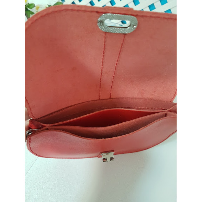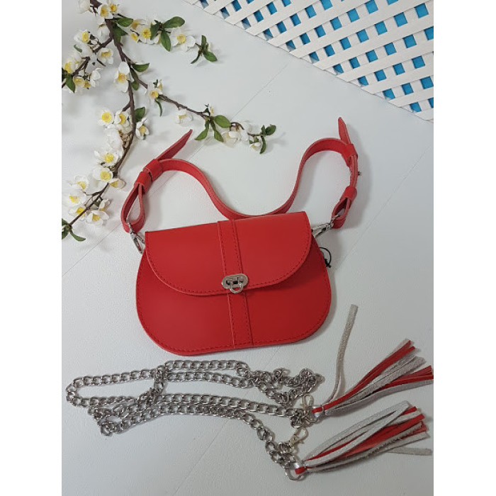 Ця маленька сумочка стане незамінним аксесуаром на всі випадки життя! Виконана з натуральної якісної шкіри, добре тримає форму. Закривається на металевий портфельний замочок. Усередині три відділення, без підкладки, має багато варіантів для носіння і можливо її придбати з шкіряний ременем або ланцюжком. З шкіряним ременем можна носити в форматі поясної сумки, а також на плече.З ланцюжком можливо носити на плечі і на поясі. Можливо придбати і ремінь, і ланцюжок, щоб міняти їх місцями. Вибір за вами!