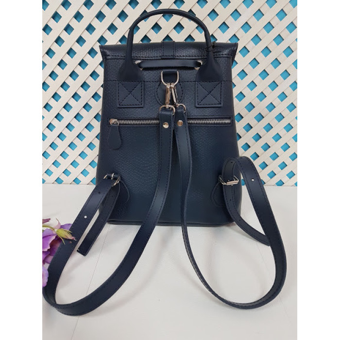 Неймовірно зручний рюкзак з якісної шкіри. Має одне велике відділення на ремінці і на затягуванні. Зі зворотного боку рюкзака знаходиться містка кишеня на блискавки. Спереду знаходиться невелика шкіряна кишеня на ремінці. Рюкзак всередині на підкладці. Довжину ременів рюкзака можна регулювати (по потребі можемо зробити додаткові отвори).