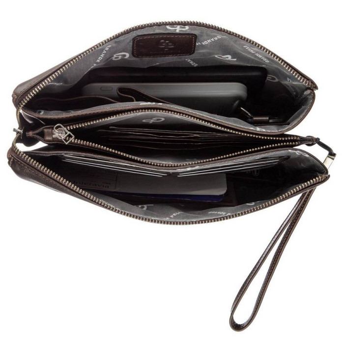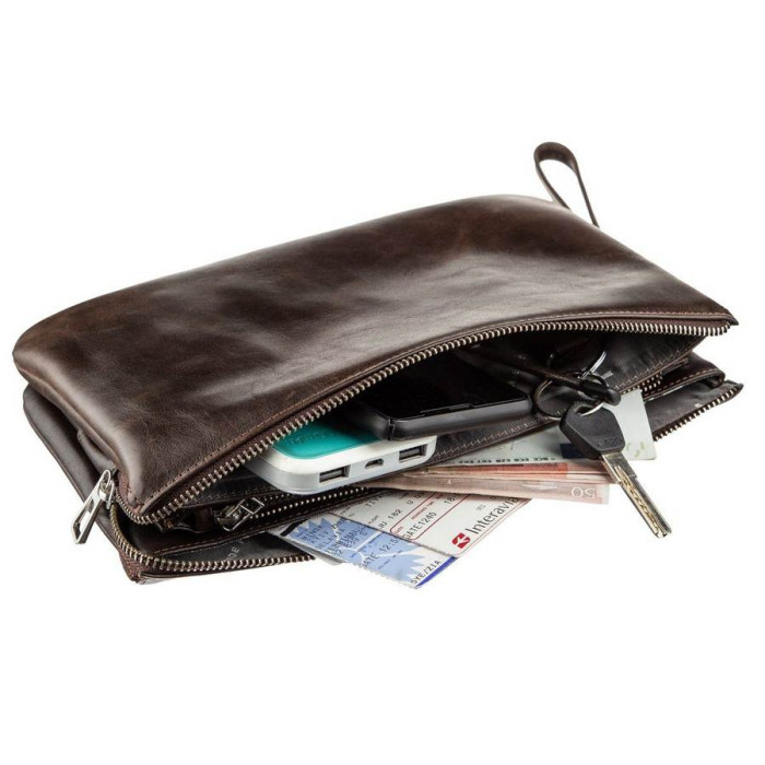 Барсетка для чоловіків виготовлена з італійської натуральної шкіри. Модель виглядає дуже оригінально і солідно. Барсетка ідеально доповнить будь-який ваш образ. Виріб з натуральної шкіри проноситься набагато довше, ніж зі шкірозамінника або текстилю. Доповнена барсетка якісної європейської фурнітурою сріблястого кольору. З такою барсеткою ви однозначно не залишитеся без компліментів на свою адресу. Виріб також можна носити на зап'ясті за допомогою знімного ремінця. Барсетка упакована в повстяний чохол чорного кольору. Аксесуар буде прекрасним подарунком для будь-якого чоловіка.