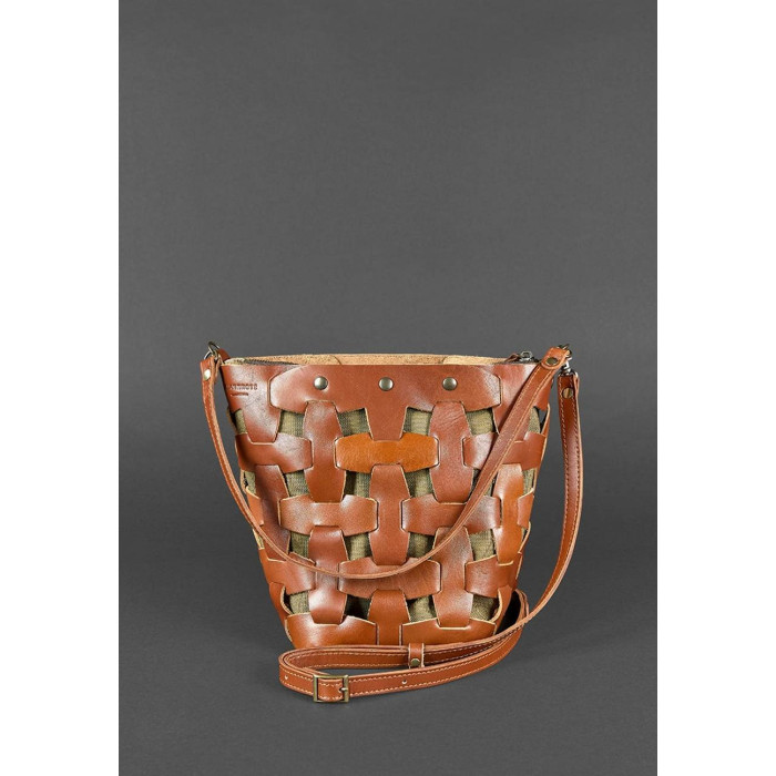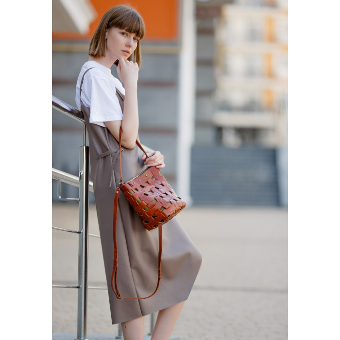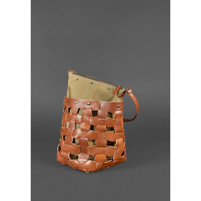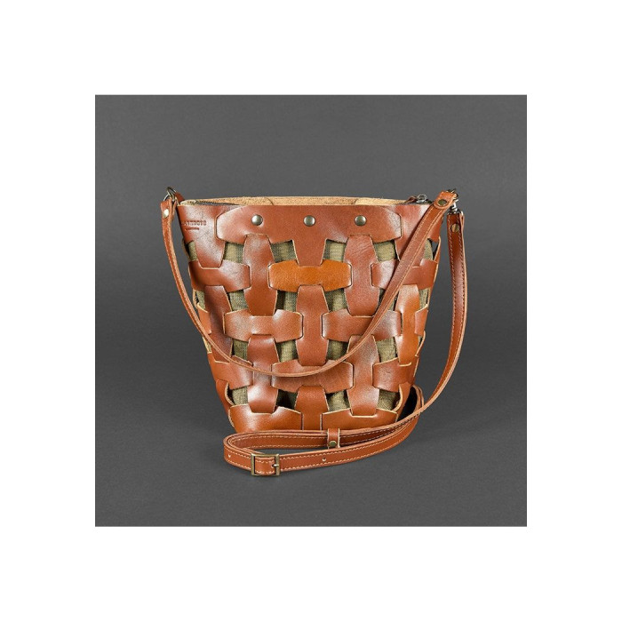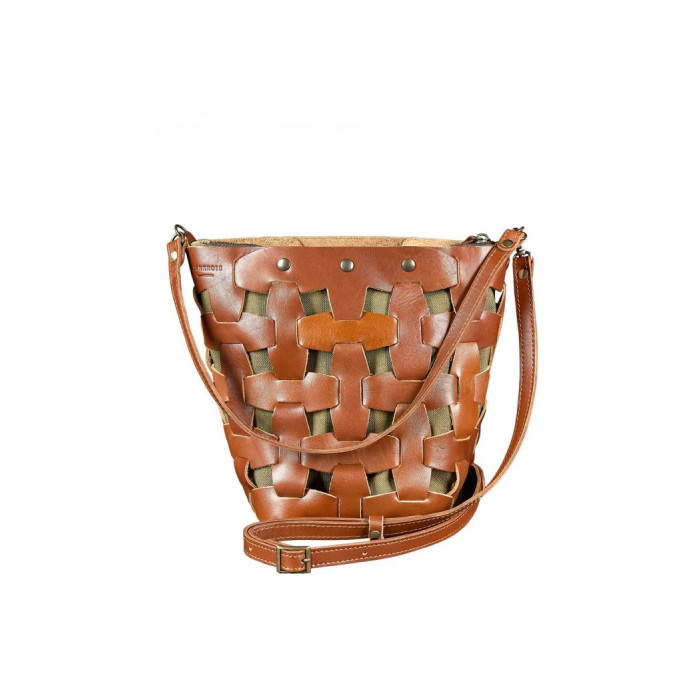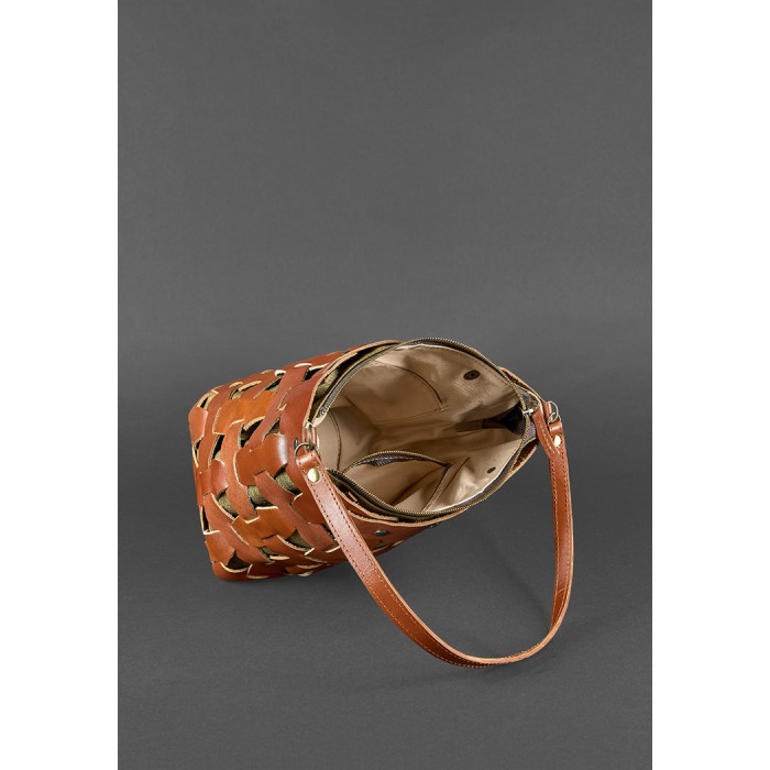 Сумка Пазл M – зручна смука середнього розміру, яка вмістить більше ніж необхідні дрібниці, але не буде дуже громіздкою і величезною. Виготовлена сумка з натуральної шкіри Krast в кольорі коньяк. Доповнює і підкреслює приємний відтінок шкіри бронзова тканину, з якої пошита внутрішня сумка. Таке гармонійне поєднання і оригінальний дизайн зроблять цю сумку вашою улюбленицею!