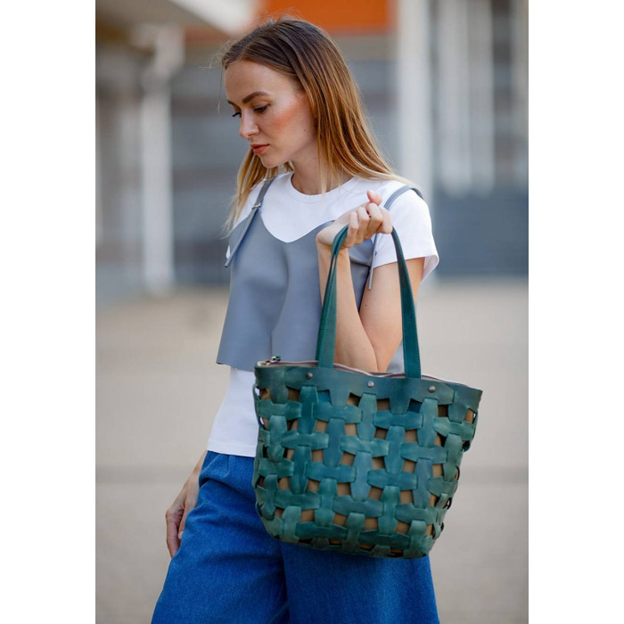 Каркас сумки складається з шкіряних смужок, з'єднаних за принципом пазлів. Для виготовлення сумки використовувалася міцна і досить щільна натуральна шкіра Crazy Horse, яка володіє особливим вінтажним шармом.