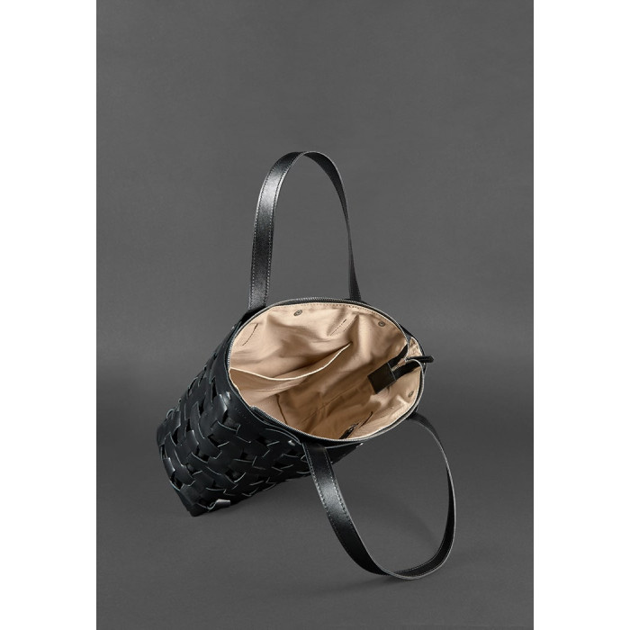 Шкіряна плетена сумка в темно-синьому кольорі безумовно сподобається любителькам стильних і оригінал..