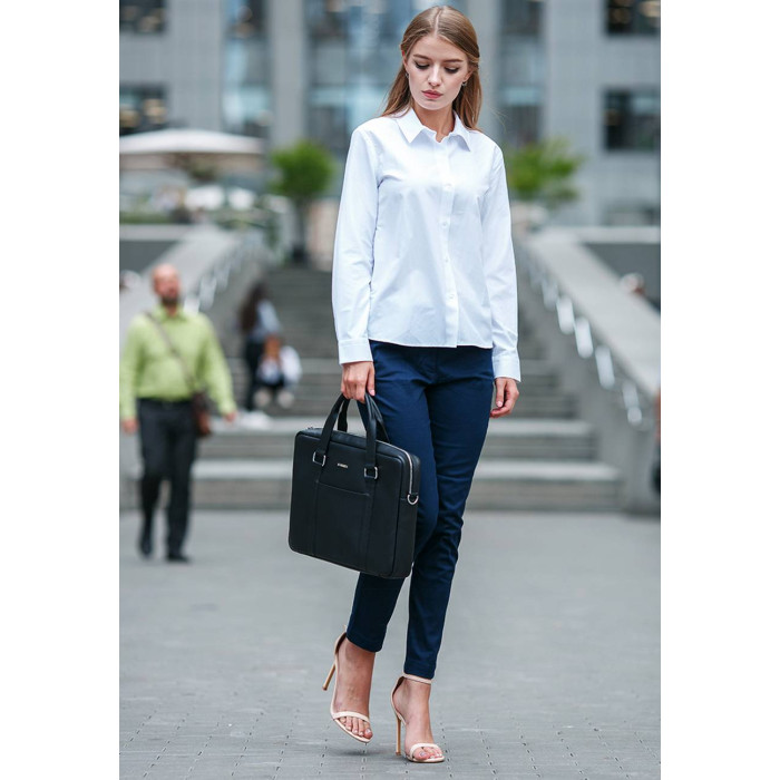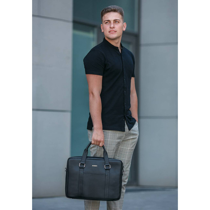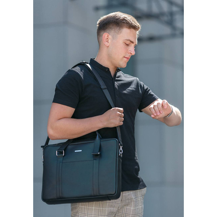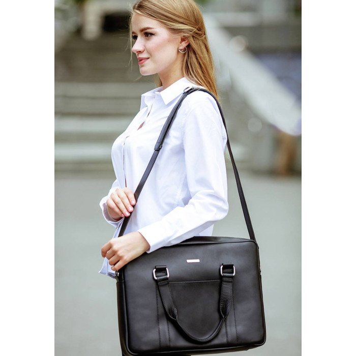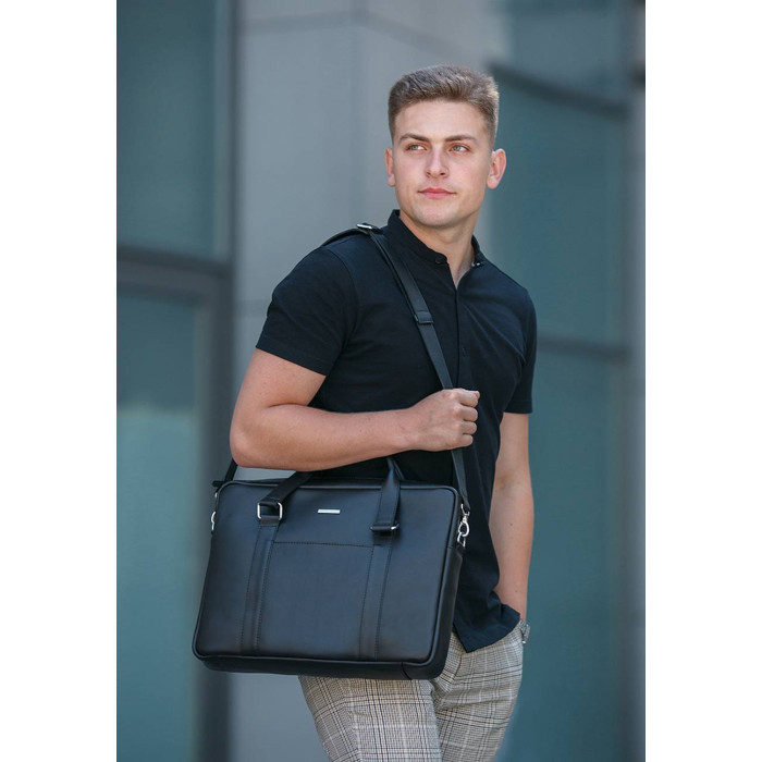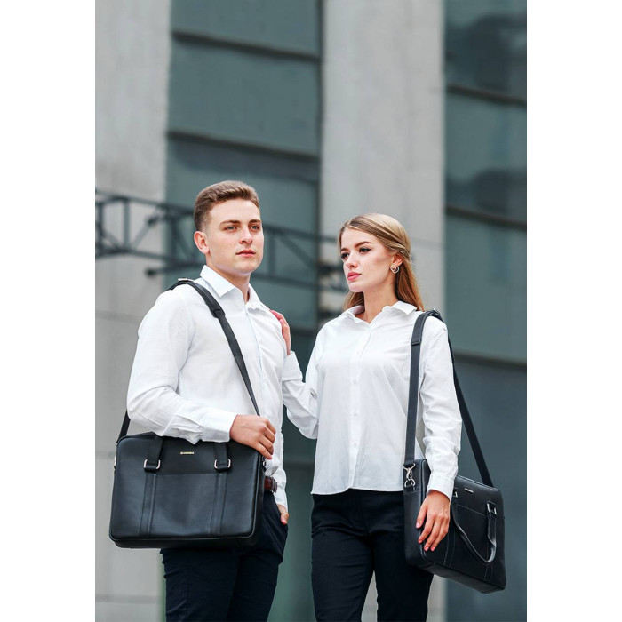 Завдяки чорному кольору і лаконічному дизайну сумка підійде як чоловікам, так і жінкам. Шкіряна сумка для ноутбука підкреслить статус і стиль власника.