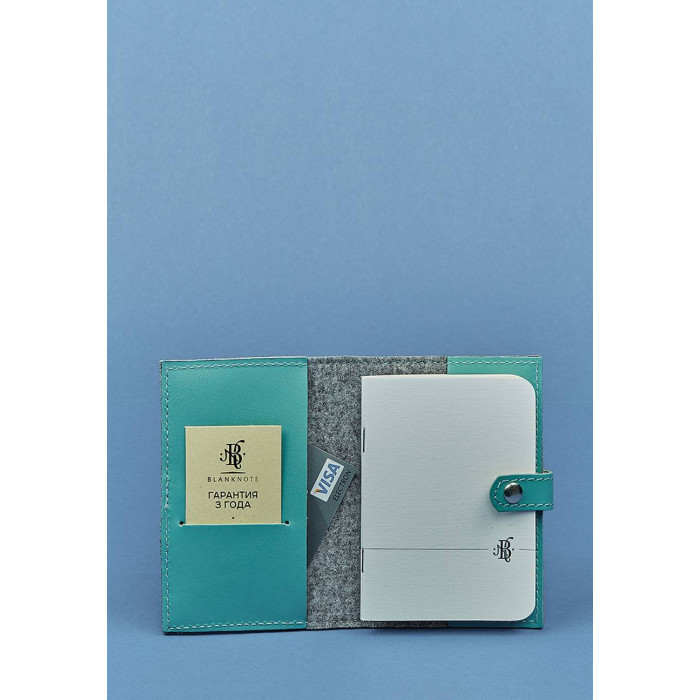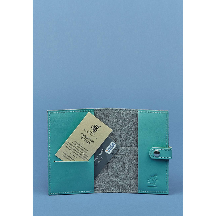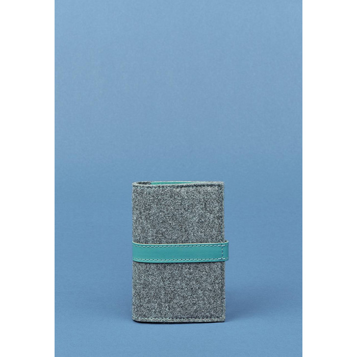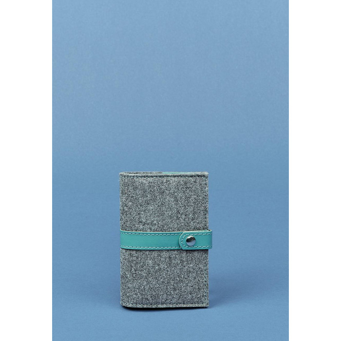 Фетровий жіноча обкладинка для паспорта 1.1 з шкіряними бірюзовими вставками - BN-OP-1-1-felt-tiffany BlankNote