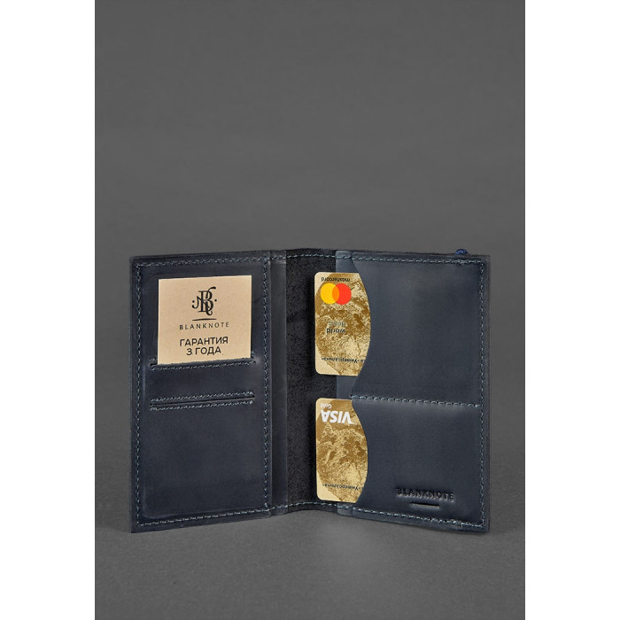 Ця обкладинка не тільки збереже, але й прикрасить ваші документи. Глибокий насичений колір нічного неба і оксамитова поверхня натуральної шкіри роблять аксесуар неймовірно привабливим. У жіночій руці обкладинка виглядає вишукано, а в чоловічій – брутально і стильно.