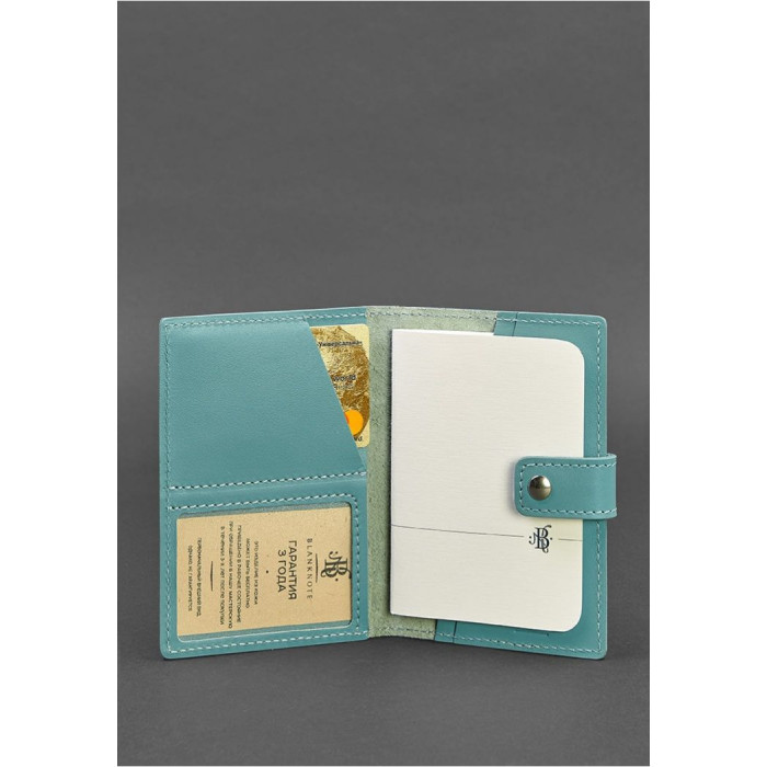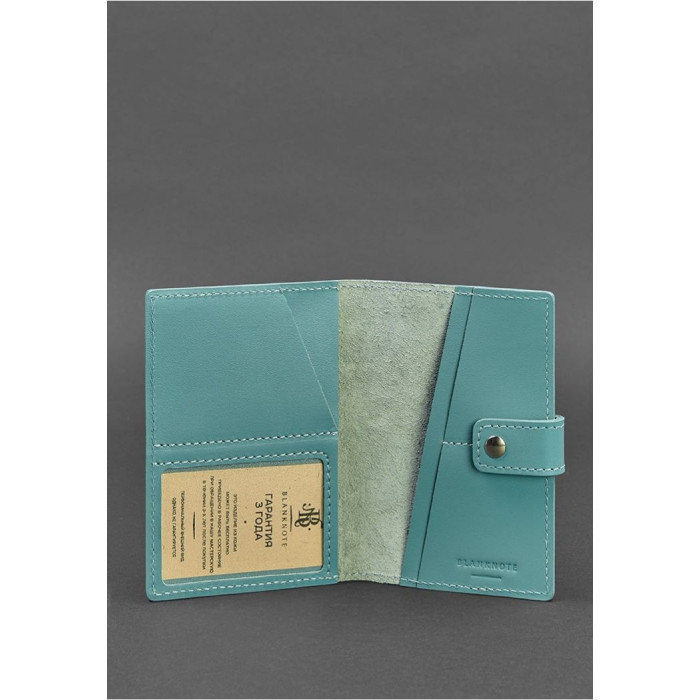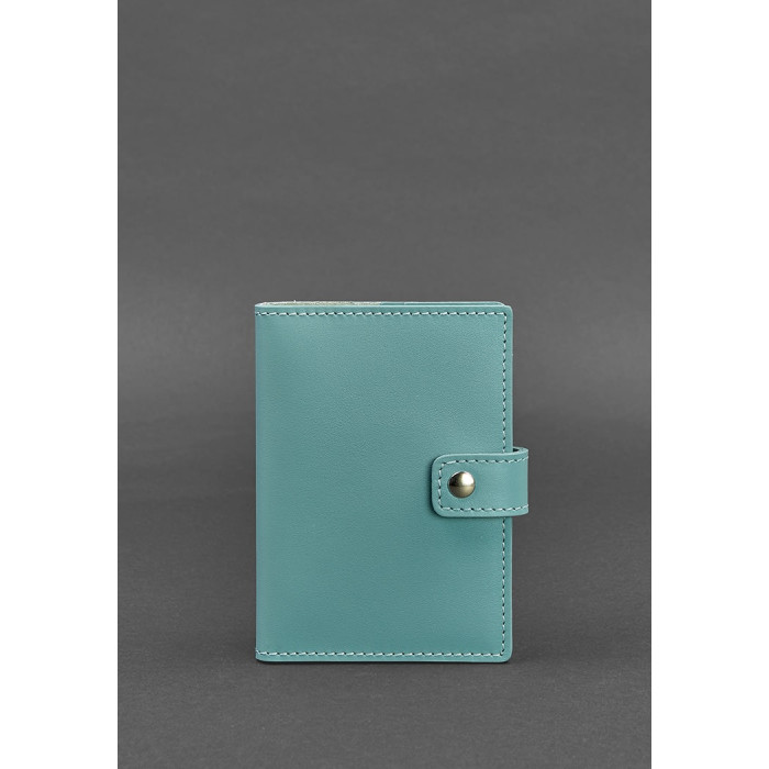 Навіть така деталь як обкладинка для паспорта здатна повністю вплинути на образ і на враження, яке справляє людина. Не варто нехтувати такими дрібницями, особливо, якщо Вам часто доводиться носити з собою паспорт. Жіноча обкладинка для паспорта з ніжно-бірюзово натуральної шкіри сподобається дівчатам, які люблять вишукані та витончені речі. Обкладинка має лаконічний дизайн, закривається хлястиком з кнопкою.